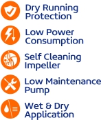 Features • Low Power Consumption • Dry Running Protection. • Self Cleaning Impeller • Easy Plug and Pump Installation.