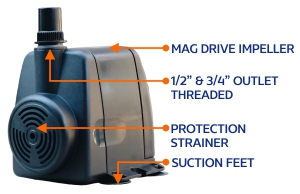 MULTI-FUNCTION PUMP These pumps can be used in water features, fountains, aquariums and ponds for circulation. They are highly energy efficient and have a long service life.